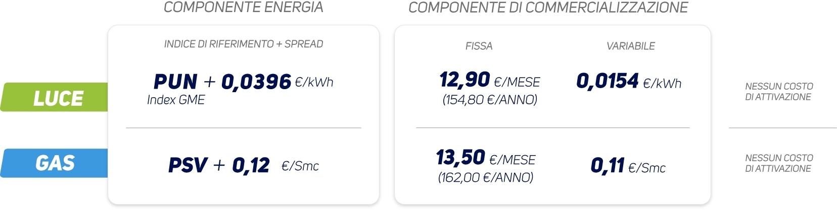 Super Casa Smart è sottoscrivibile con almeno un servizio Luce o Gas. Il “costo materia prima” si riferisce alla sola componente energia (IVA e imposte escluse) ed è comprensivo delle perdite di rete come definite da ARERA. Il servizio Mobile con minuti illimitati è soggetto a condizioni di uso lecito e conforme ai principi di correttezza e buona fede e a sovrapprezzo GB in roaming ai sensi della delibera AGCOM n.182/25/CONS. Clicca qui per maggi ori informazioni. La tecnologia 5G è soggetta a limitazioni tecniche e/o geografiche. Il risparmio di 240 € è determinato dagli sconti legati alla promo “Sempre Connessi Casa Plus”. Lo Sconto Benvenuto di 40 € è legato alla promo “Benvenuto in Optima”. L’offerta con le due promo è sottoscrivibile fino al 30 novembre. Per i regolamenti clicca qui. Il costo di attivazione del servizio Internet è di 29,90 € con tecnologia FTTH e FTTC e di 70 € con tecnologia FWA . Per conoscere tutti i dettagli di Protezione Clima clicca qui. Il servi zio Teleconsulto Medico è fornito da una società terza partner di Optima con medici generici ad essa convenzionati. Il servizio Assistenza h24 è distribuito da Optima ed erogato da Mapfre Warranty S.p.a. Per conoscere i dettagli dell’offerta e dei singoli servizi, consulta le Condizioni di Contratto Super Casa Smart e le Condizioni Particolari presenti all’interno delle stesse nella sezione “Documentazione Contrattuale” in fondo alla pagina privati di Optimaitalia.com.