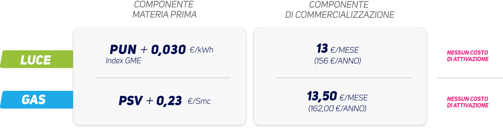 * Super Casa Smart è sottoscrivibile con almeno un servizio Luce o Gas. Il “costo materia prima” si riferisce alla sola componente energia (IVA e imposte escluse) ed è comprensivo delle perdite di rete come definite da ARERA. Il servizio Mobile con minuti illimitati è soggetto a condizioni di uso lecito e conforme ai principi di correttezza e buona fede e a sovrapprezzo GB in roaming ai sensi della delibera AGCOM n.182/25/CONS. Clicca qui per maggi ori informazioni. La tecnologia 5G è soggetta a limitazioni tecniche e/o geografiche. Il risparmio di 240 € è determinato dagli sconti legati alla promo Sempre Connessi Casa Plus. Lo Sconto Benvenuto di 50 € è legato alla promo Welcome Promo Dual. Lo sconto del costo mensile del mobile è legato alla promo Super SIM Extra. Sconti applicati in bolletta. L’offerta con le tre promo è sottoscrivibile fino al 3 maggio 2026. Per il regolamento. Per i regolamenti clicca qui. I servizi Videoconsulto Medico e Videoconsulto Veterinario sono forniti da una società terza partner di Optima con medici generici e veterinari ad essa convenzionati. Il servizio Assistenza h24 è distribuito da Optima ed erogato da Mapfre Warranty S.p.a. Per conoscere i dettagli dell’offerta e dei singoli servizi, consulta le Condizioni di Contratto Super Casa Smart e le Condizioni Particolari presenti all’interno delle stesse nella sezione “Documentazione Contrattuale” in fondo alla pagina Privati di Optimaitalia.com.